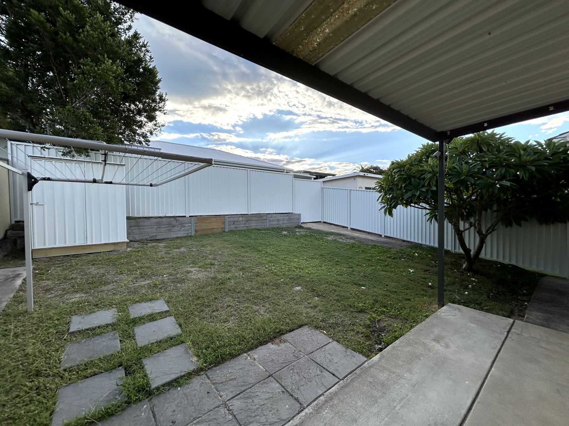- Fully fenced backyard with a garden shed included.
