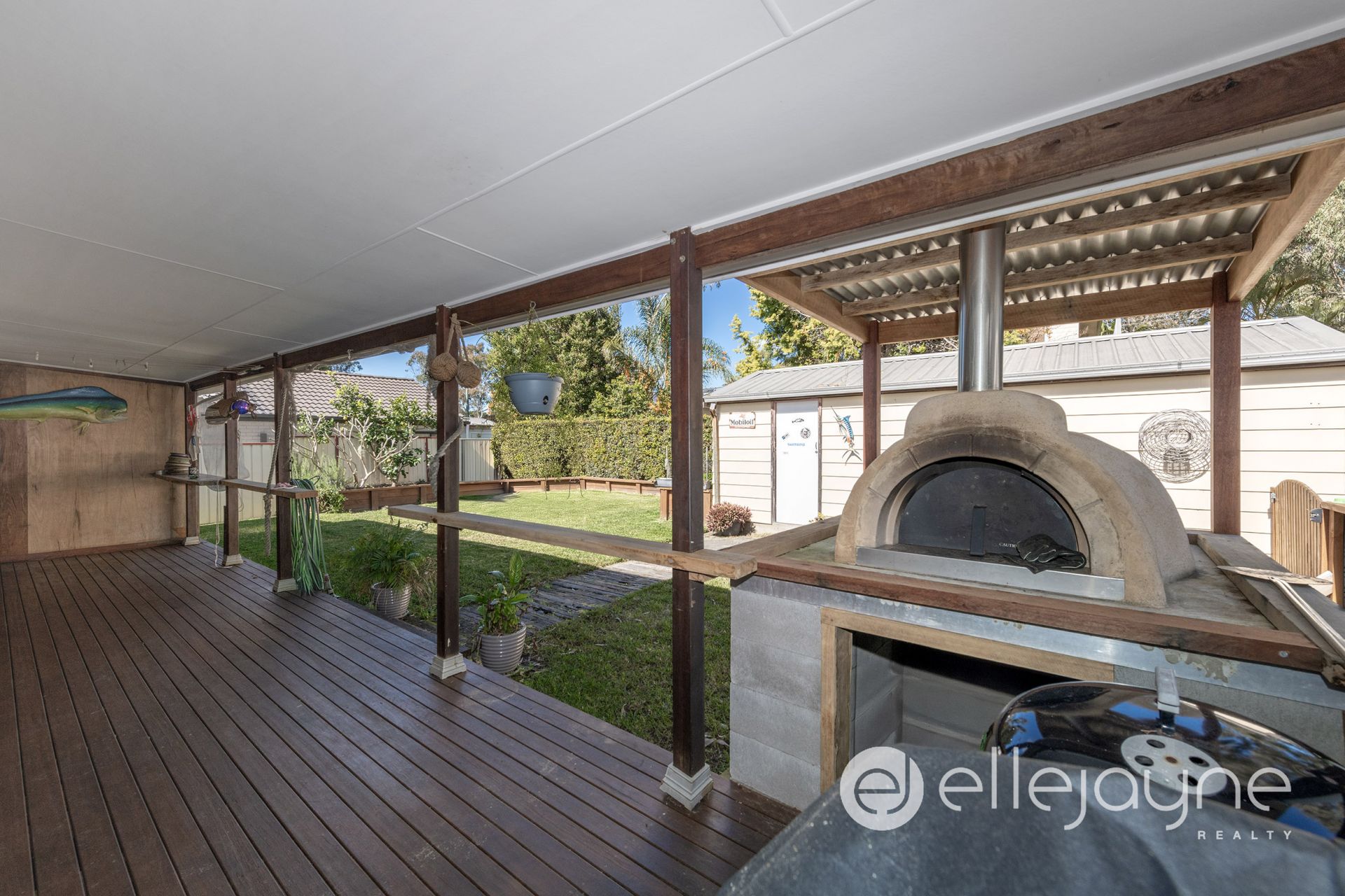 • Covered timber deck overlooking a level, fully fenced yard
