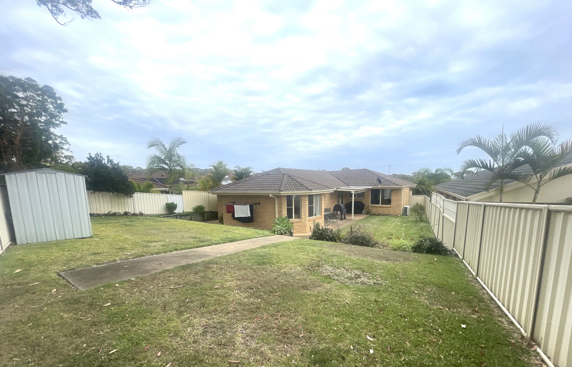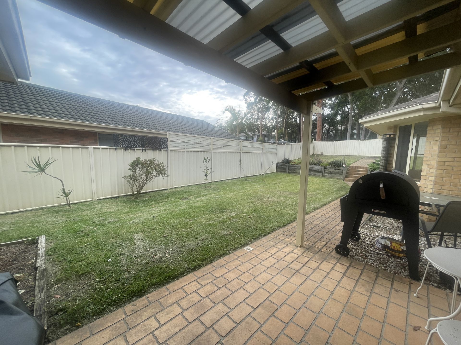 Large, fully fenced backyard, ideal for weekend barbecues and children's activities.