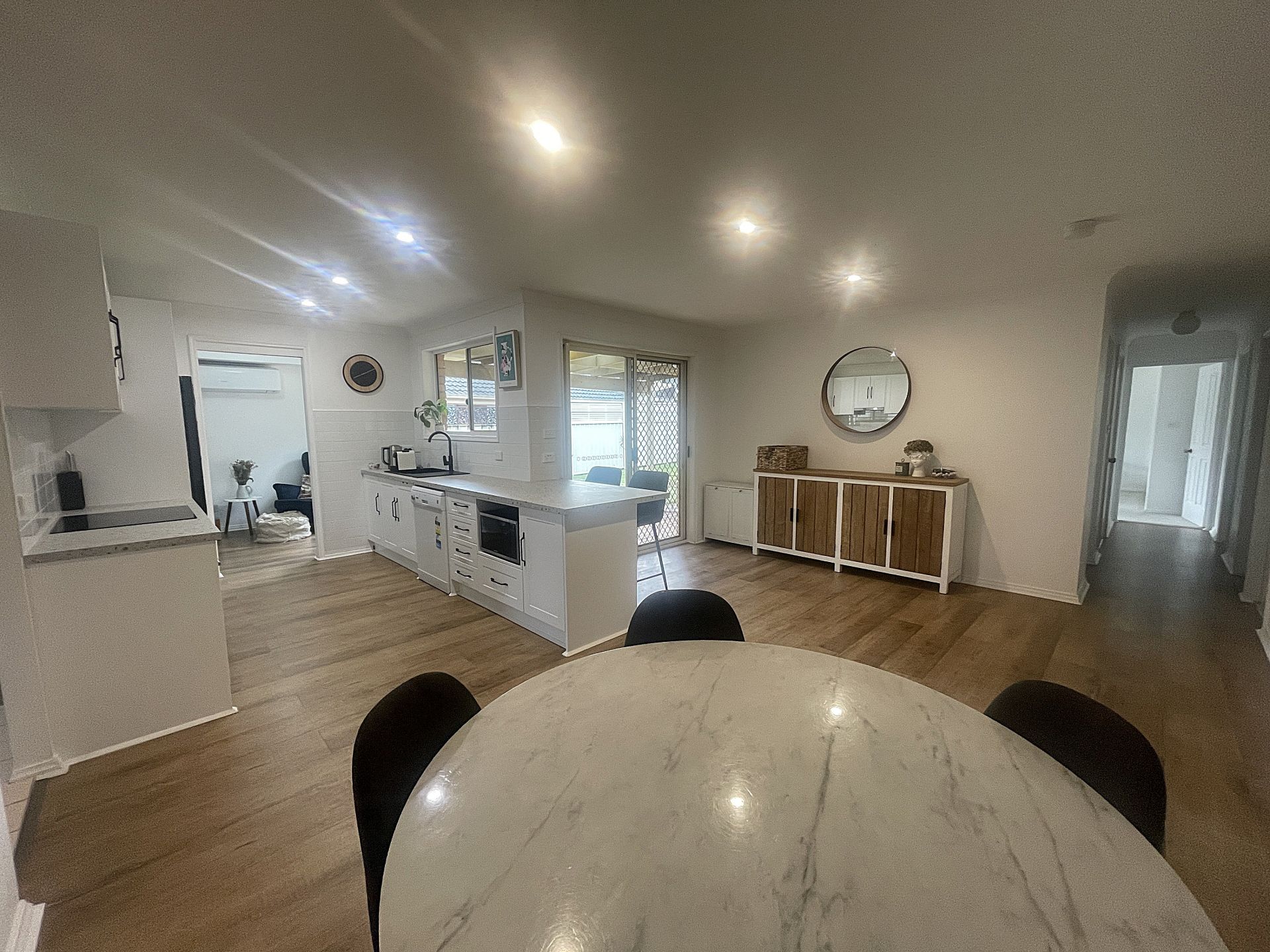 Open kitchen and rumpus room overlooking the backyard, giving you full view of outdoor play and entertainment