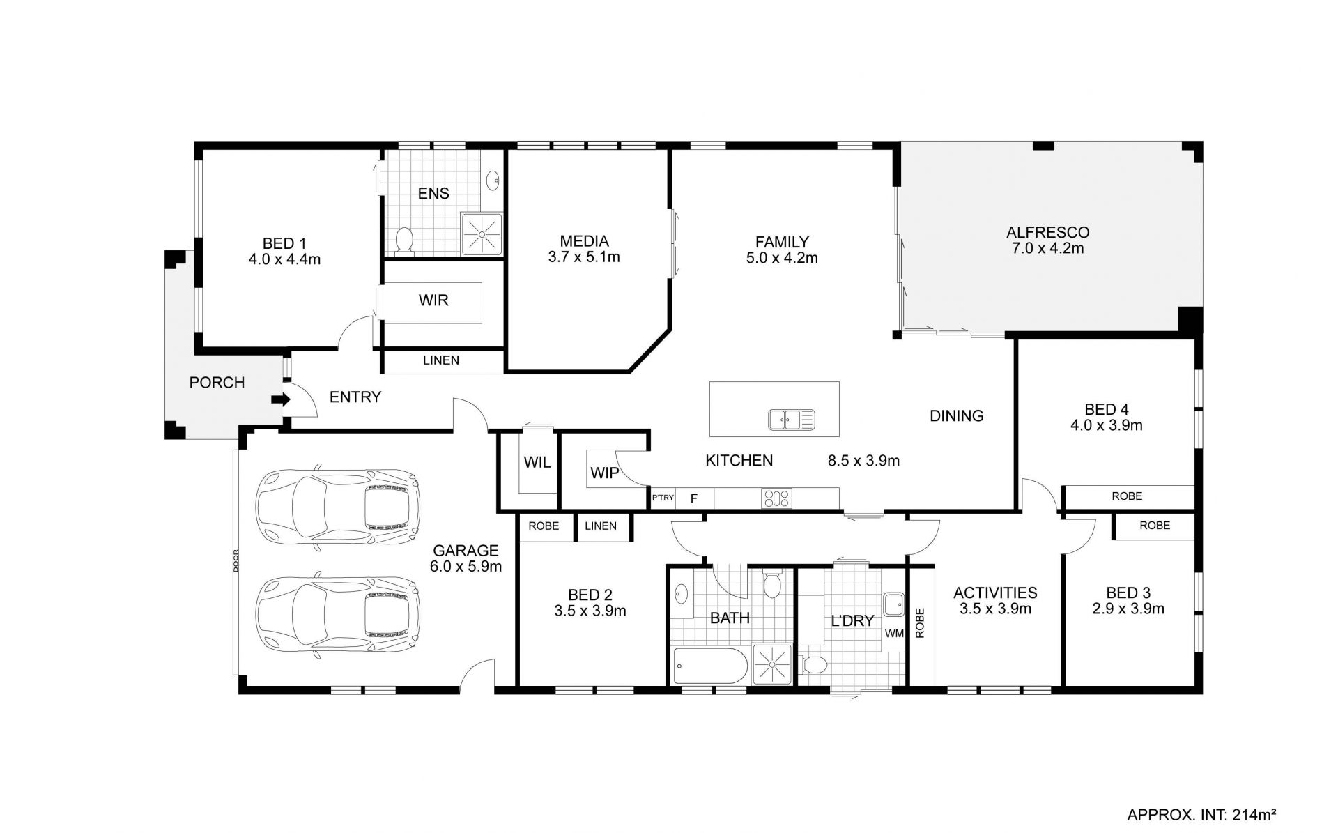 - 4 Spacious Bedrooms with double built-in robes and shelving for ample storage