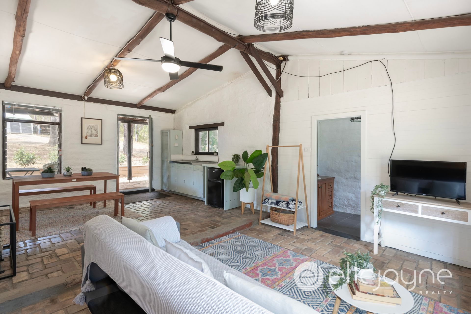 • Character-filled self-contained cottage with the charm of a bygone era complimented with quality mudbrick construction, convict-style brick paving, vintage laundry basin, antique wood stove/fireplace and exposed timber beams.