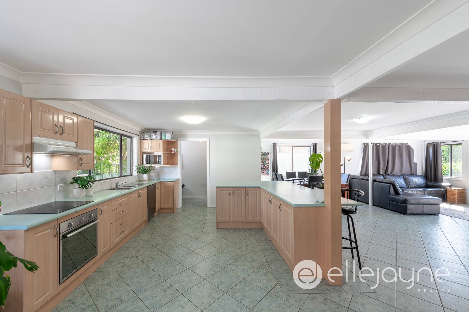 • Large open plan kitchen with large L-shaped benchtop and breakfast bar, walk-in pantry, integrated dishwasher and oven overlooking large entertaining area.