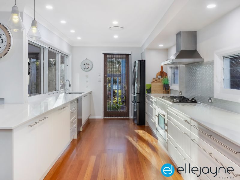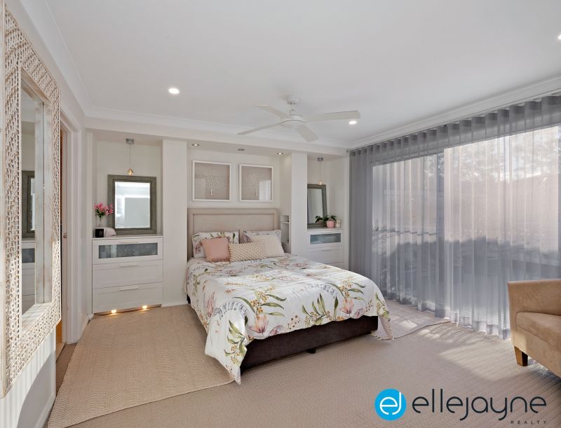 The attention to detail and thoughtfulness of this home is evident with an internal bridge gracefully traversing over a serene coy pond, artfully separating the tranquil sleeping quarters from the expansive living areas. The heart of the home lies within its gourmet kitchen, featuring sleek stone benchtops and cafe-style windows that effortlessly extend onto the alfresco dining area, offering an idyllic setting for hosting soirées.